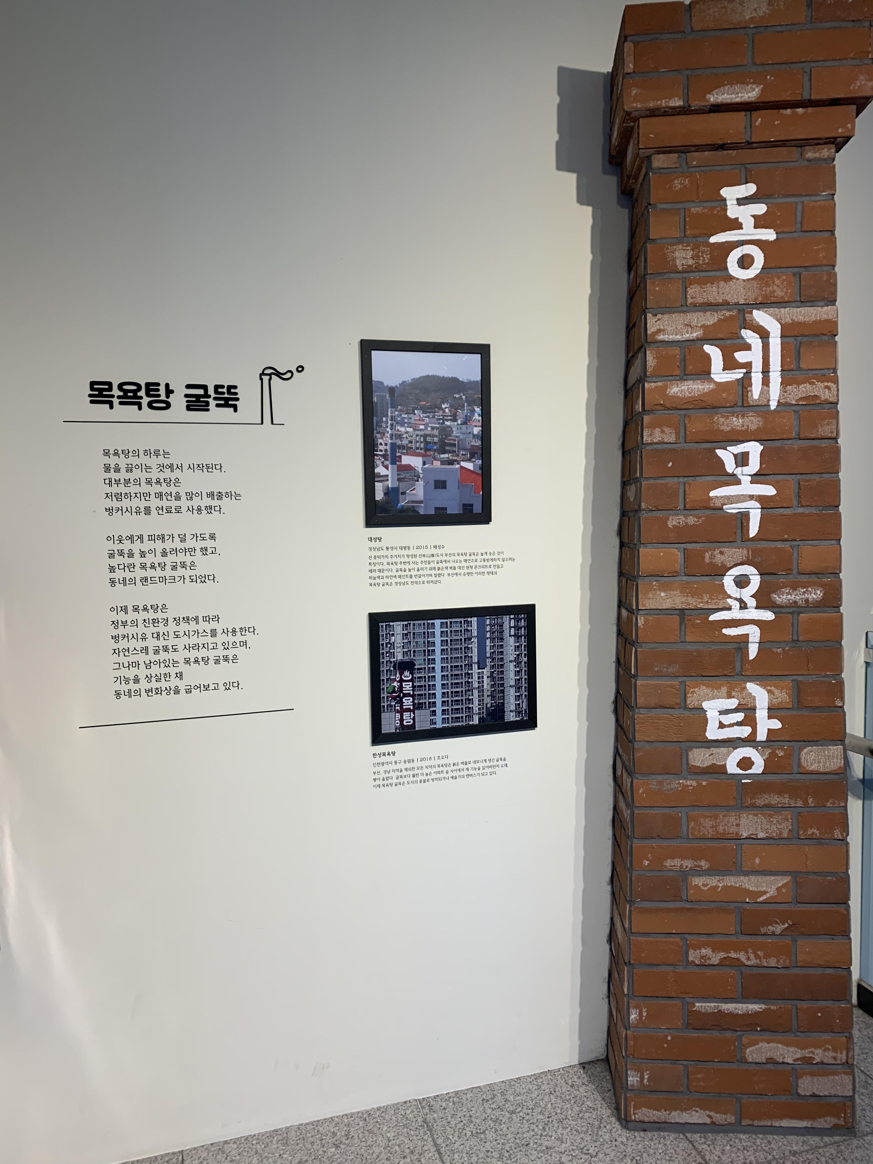 2층에 위치한 전시장에 도착하자 친근한 목욕탕 굴뚝이 가장 먼저 관람객을 맞는다. 전시는 목욕탕과 목욕문화를 주제로 근대에 등장한 목욕탕이 찜질방으로까지 이어지는 과정과 그 속에서 만들어진 목욕문화를 살핀다. 탈의실, 욕탕, 휴게실로 구성된 전시실을 걷다보면 일제 강점기부터 현재까지의 목욕 문화를 일별하게 된다.