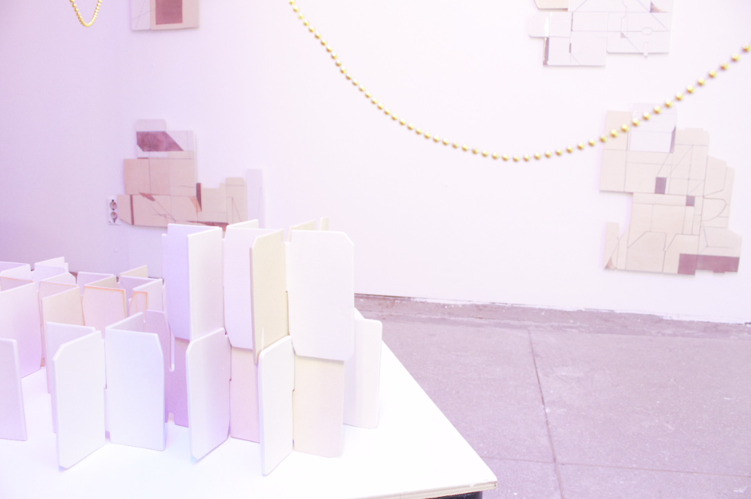 전시장 초입에서 마주하게 되는 박지애의 <가변적 공간분할을 위한 파티션>(2019)과 <비정형 스토리지를 위한 전개도>(2019)는 작가의 질문에서부터 시작된다. “형상을 촉발하는 평면이 될 것인가, 형상을 유보하는 평면이 될 것인가?” (박지애 작가노트 중)